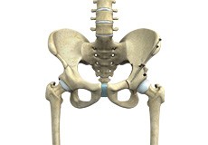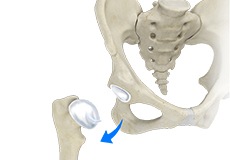 The hip joint is a “ball and socket” joint. The “ball” is the head of the femur or thighbone, and the “socket” is the cup-shaped acetabulum. The joint surface is covered by a smooth articular surface that allows pain-free movement in the joint.